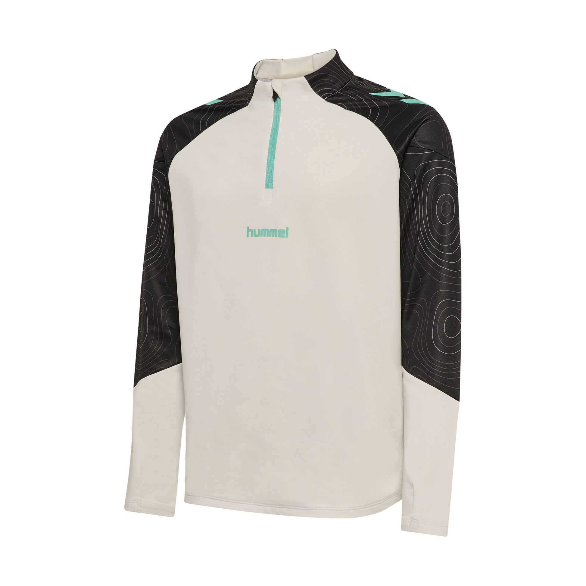 The hmlBLAZE 2.0 TRAINING HALF ZIP KIDS is a lightweight training sweatshirt with a half zip that allows easy adjustment of ventilation during activity. The shoulders feature a decorative print and hummel chevrons for a sporty and dynamic look. The smooth and flexible material ensures great freedom of movement, and a zipper garage at the top of the zip protects the chin from irritation.