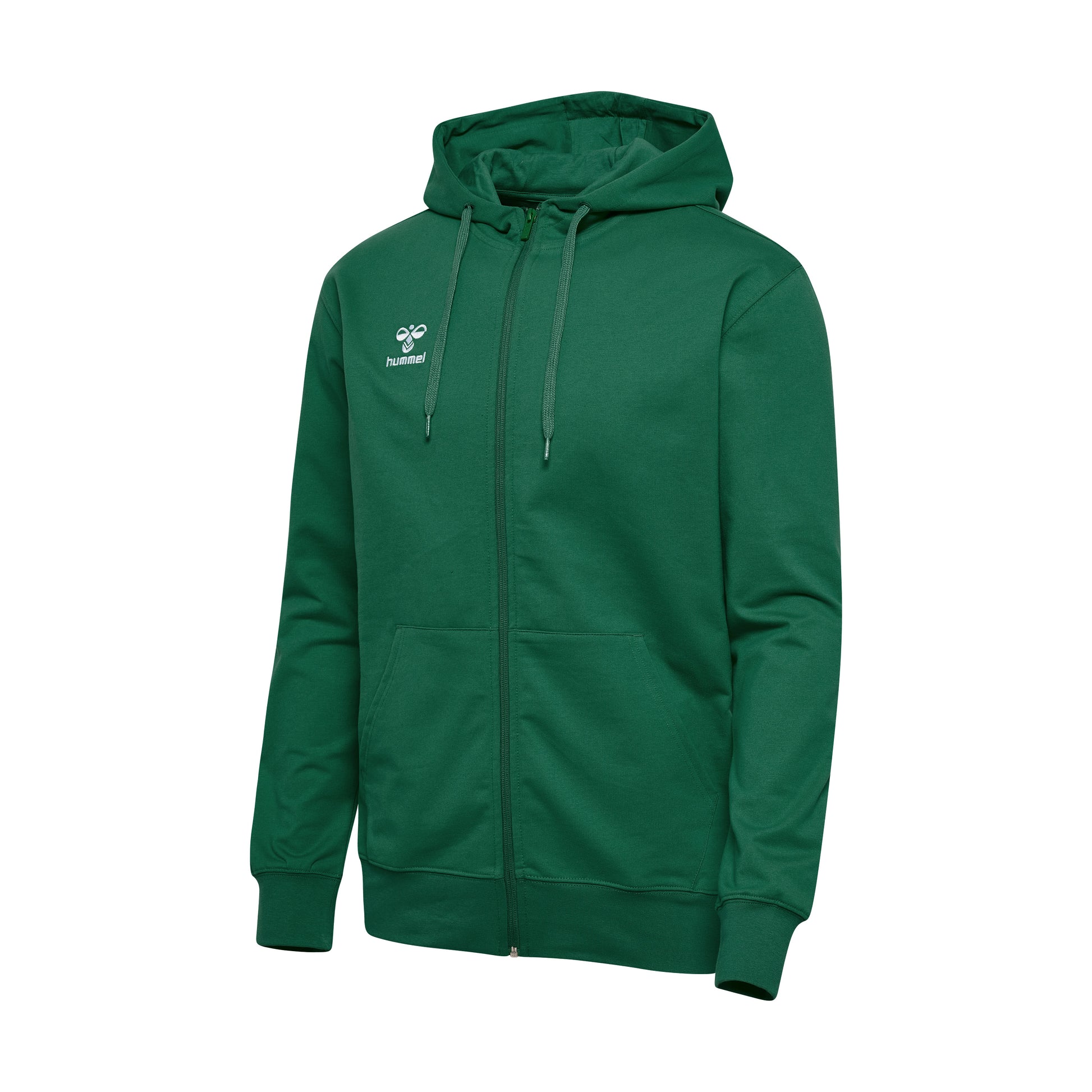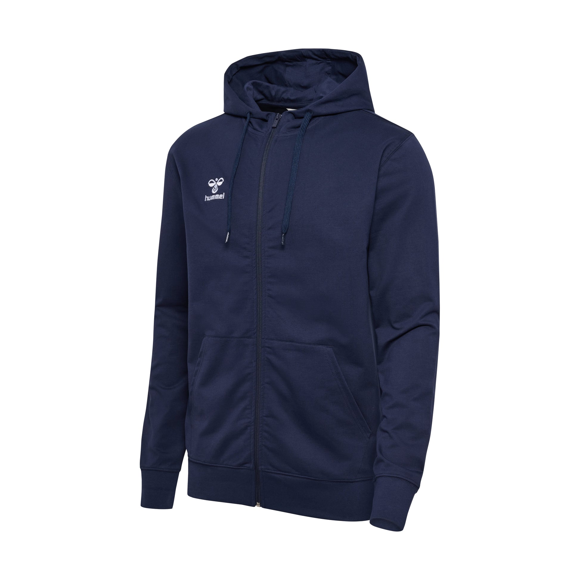 The hmlGO 2.0 Zip Hoodie is made from a soft organic cotton blend for everyday comfort and durability. Designed with a full front zipper, adjustable hood, ribbed cuffs, and front pockets, this essential training layer delivers warmth and clean team styling. Finished with an embroidered hummel logo at the chest.