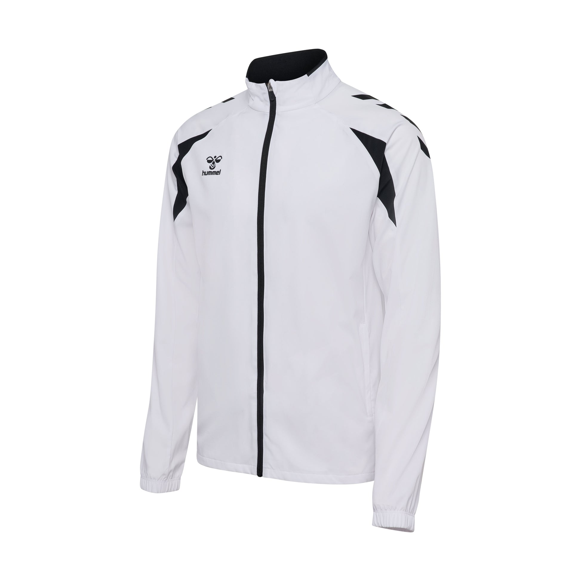The hmlCORE 2.0 Woven Jacket is a lightweight and functional training layer with an easy regular fit for mobility. The woven material provides a smooth, comfortable feel, while the full-length zipper and high collar add adjustable protection. Side pockets offer practical storage, and the elastic cuffs ensure a secure fit. Contrast panel details and hummel chevrons on the shoulders complete the sporty look.