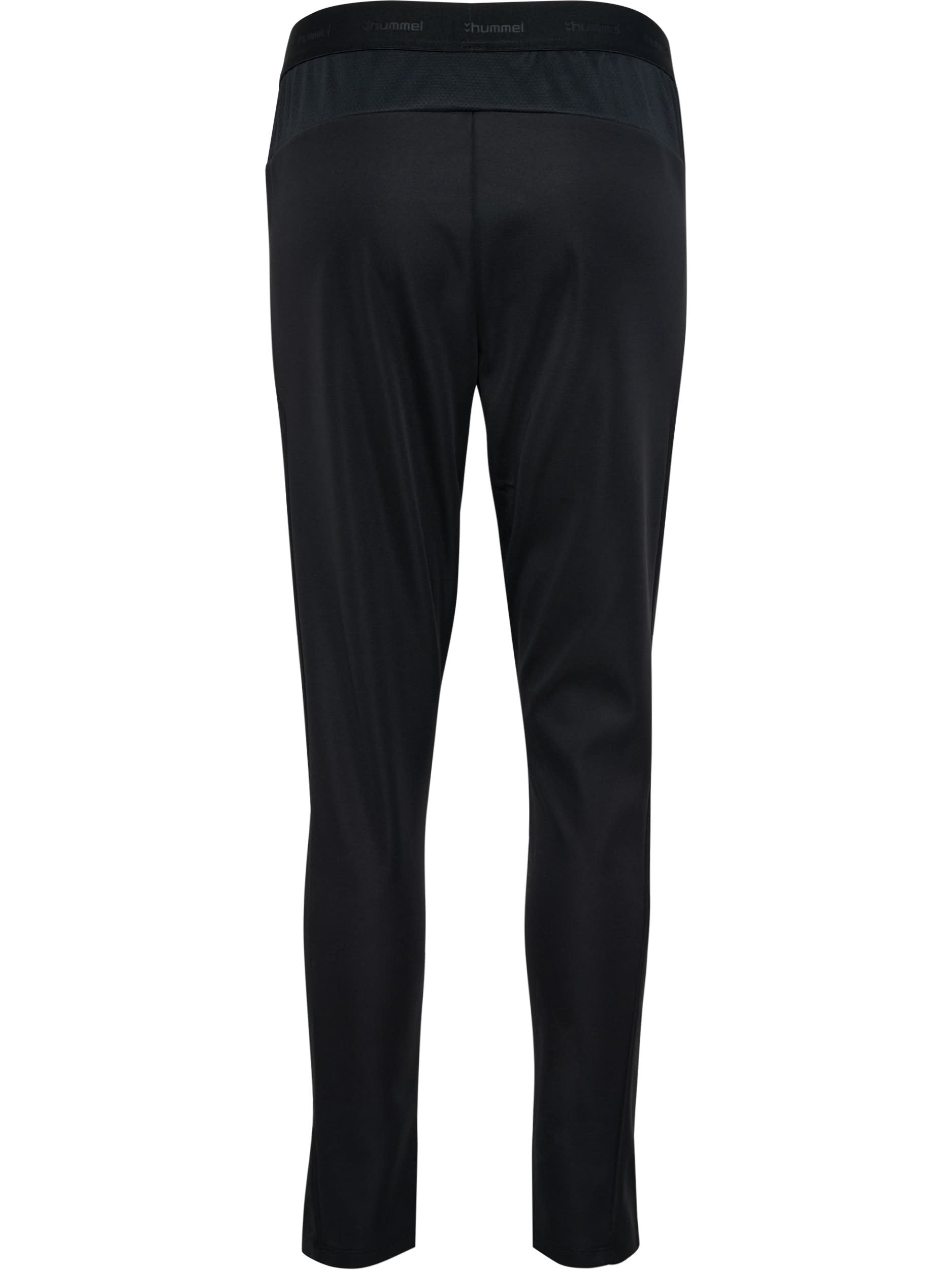 The hmlCIMA 2.0 PANTS WOMAN feature a secure zipper pocket for valuables, a drawstring waist for a snug fit, and a tapered design that narrows at the ankle. The elasticated waistband ensures comfort and easy wear. A hummel logo and hummel chevrons complete the design.