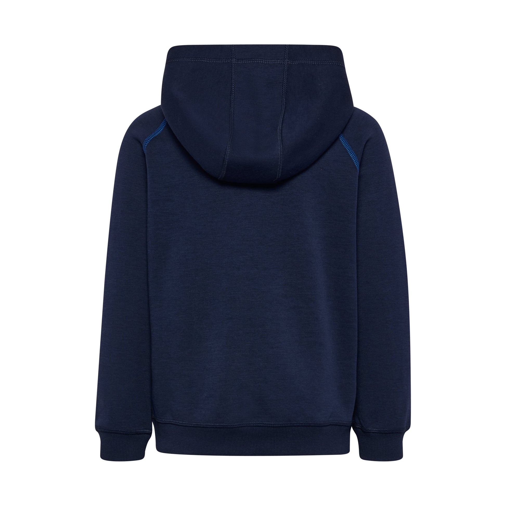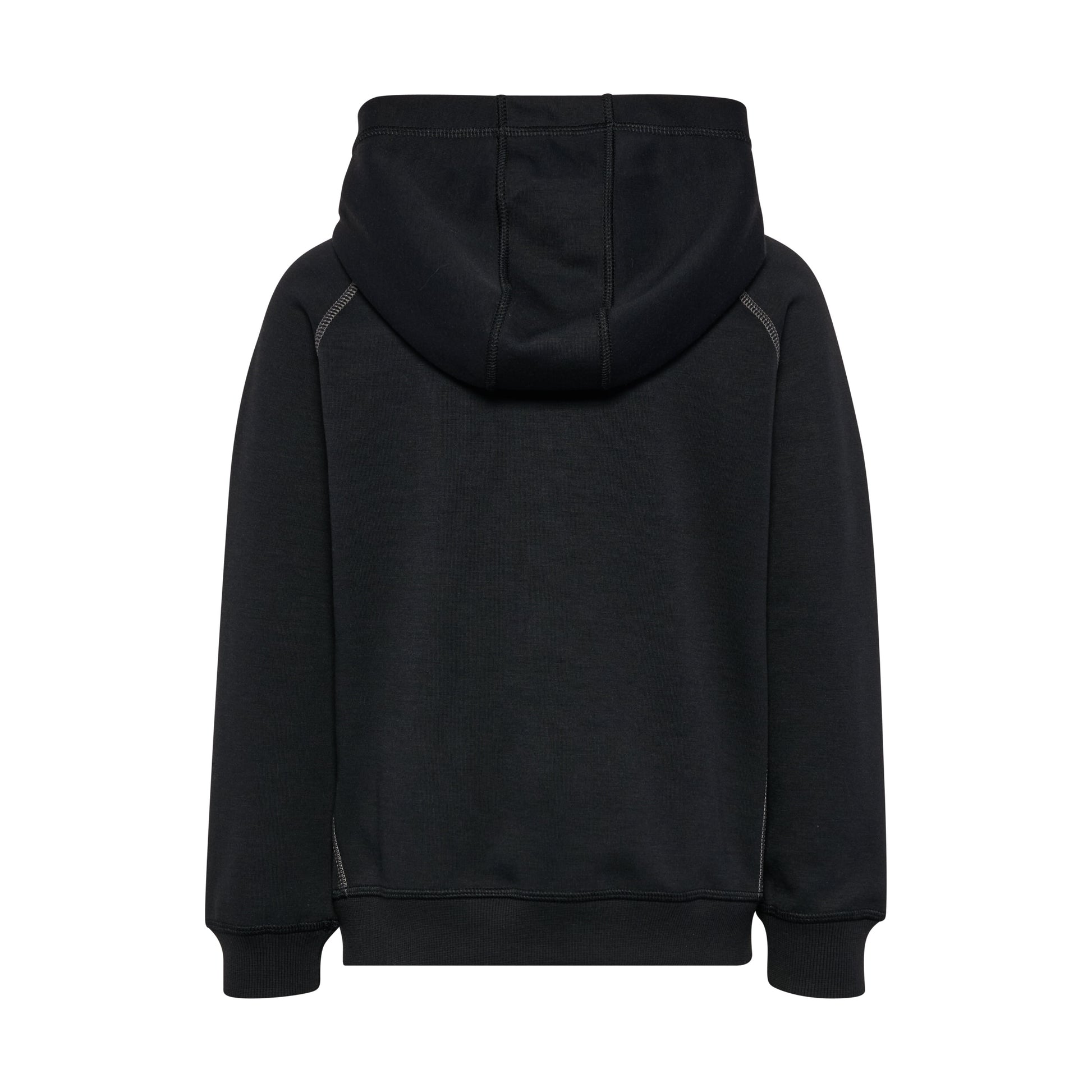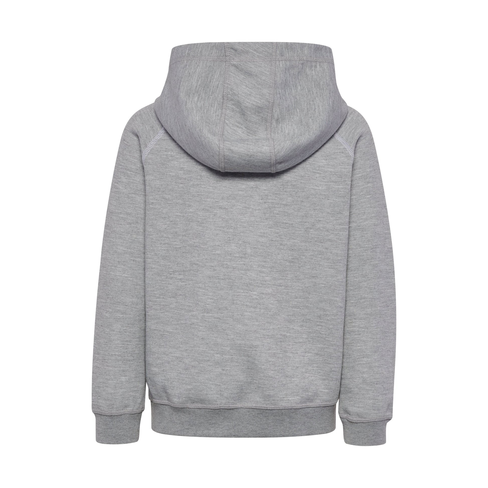 Youth zip hoodie made from soft knitted jersey fabric. Features an adjustable hood, full-length zipper with zipper garage, and side pockets. Contrast stitching highlights the shoulders and sleeves, while ribbed cuffs and hem ensure a neat fit.