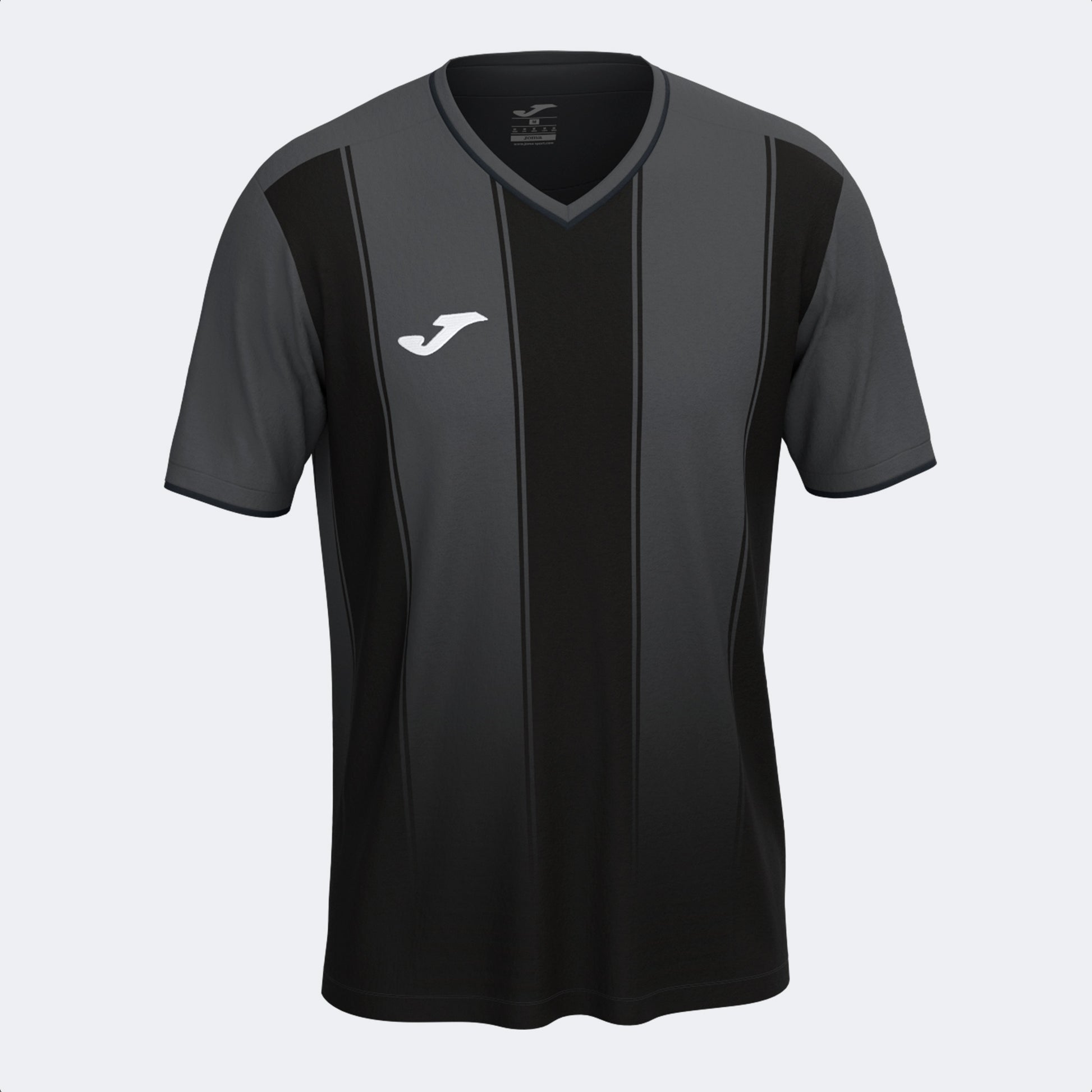 Short-sleeved men's t-shirt, designed for playing football. Perfect for those looking for comfort and advanced technology, as it will provide them with great benefits that help achieve maximum performance on the field. It features an elegant V-neck with ribbed collar. Ribbed cuffs for a comfortable fit. Made of technical fabric, known for its lightweight, durability, and breathability. Embroidered Joma logo.
